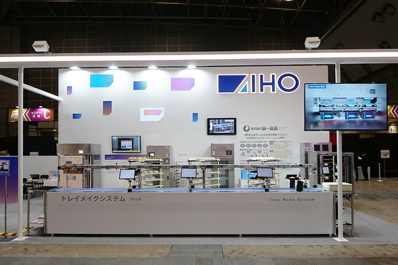 誤配膳を防ぐ「トレイメイクシステム」など、安心・安全な給食提供を支える製品を展示。